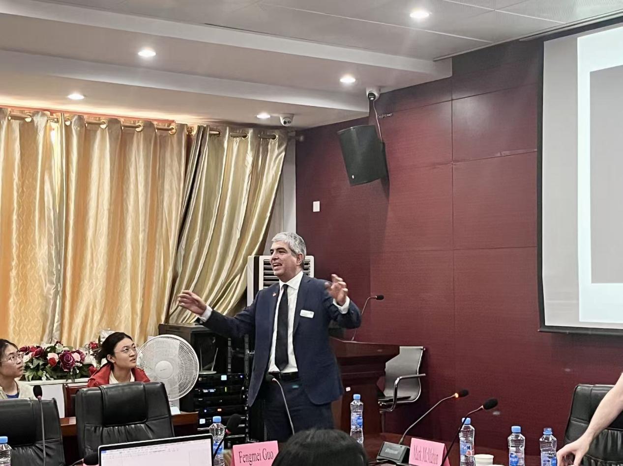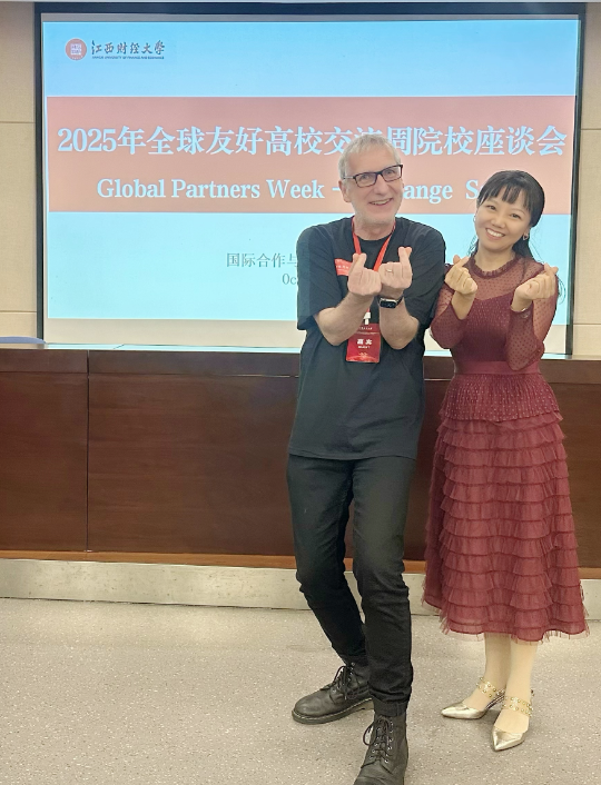 On the afternoon of October 17, 2025, the School of Sociology and Humanities at Jiangxi University of Finance and Economics hosted a delegation from Edith Cowan University (ECU) in Australia, including Professor Mark McMahon. The delegation delivered presentations on topics such as talent cultivation and innovative education in the era of artificial intelligence. Both parties engaged in discussions on how to pursue deeper collaboration in the future.