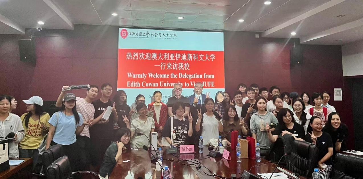 On the afternoon of October 17, 2025, the School of Sociology and Humanities at Jiangxi University of Finance and Economics hosted a delegation from Edith Cowan University (ECU) in Australia, including Professor Mark McMahon. The delegation delivered presentations on topics such as talent cultivation and innovative education in the era of artificial intelligence. Both parties engaged in discussions on how to pursue deeper collaboration in the future.