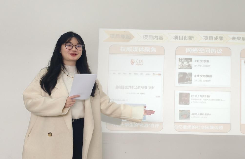复赛阶段,团队将备赛重点放在“专业呈现”上。针对8分钟展示时限,成员反复打磨PPT,创新加入“七色花”音乐治疗小组活动片段,用鲜活场景替代文字描述,增强感染力。备赛期间,团队成员常常在“映山红”校园社工站工作室研讨一整天,有人通宵优化数据可视化图表,有人逐字逐句打磨路演台词,协作精神成为晋级决赛的关键支撑。